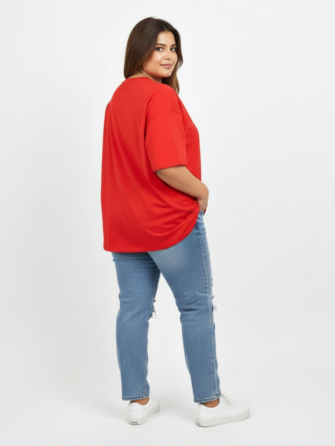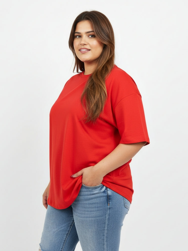 Pluswear Everyday Drop Shoulder Oversized Cotton Tshirt (Red)
