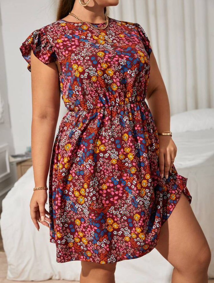 Plus Ditsy Floral Print Ruffle Sleeve Dress D1208