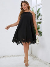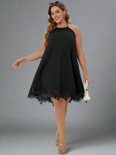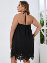Plus Laser Cut Out Tie Backless Halter Dress(Black)D492