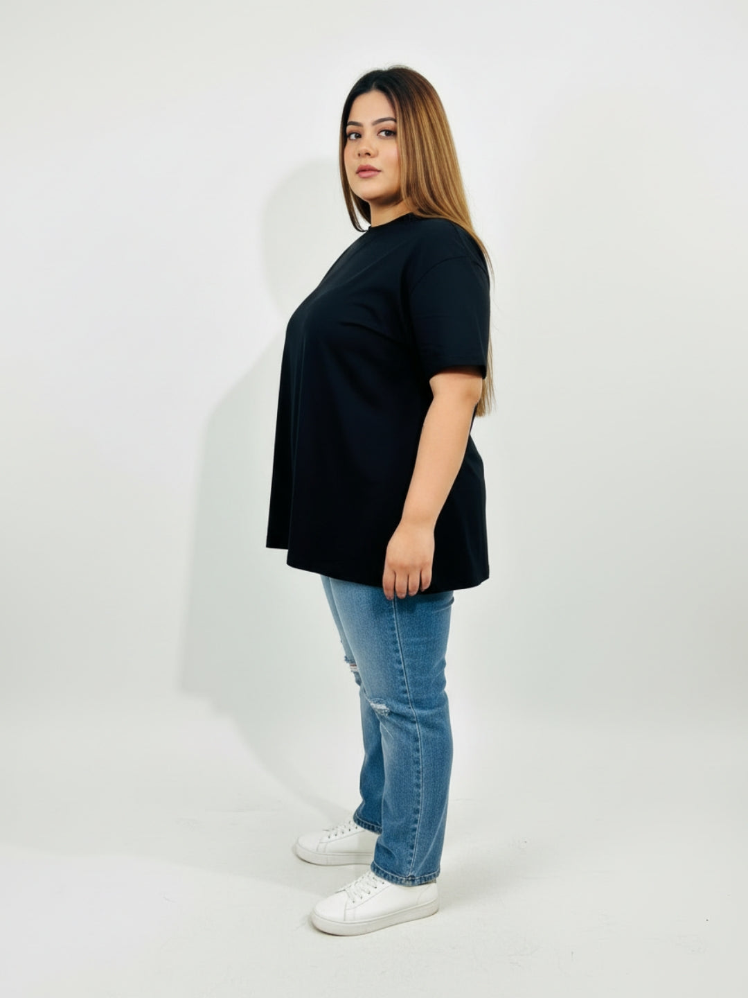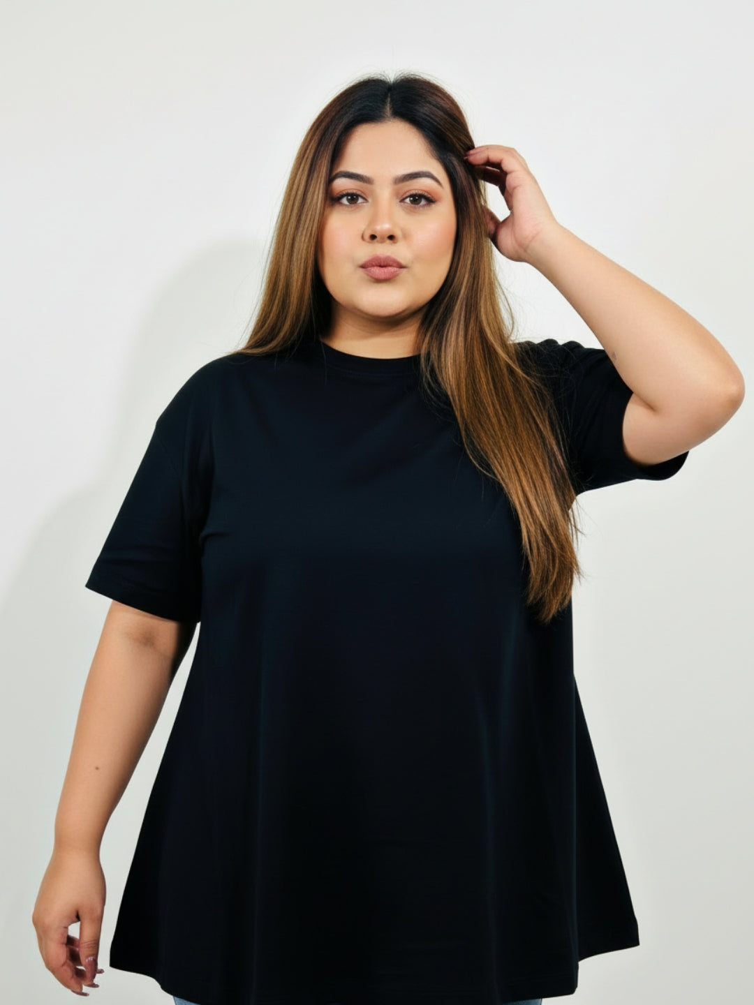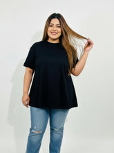 Pluswear Everyday Drop Shoulder A-Line Cotton Tshirt (Black)